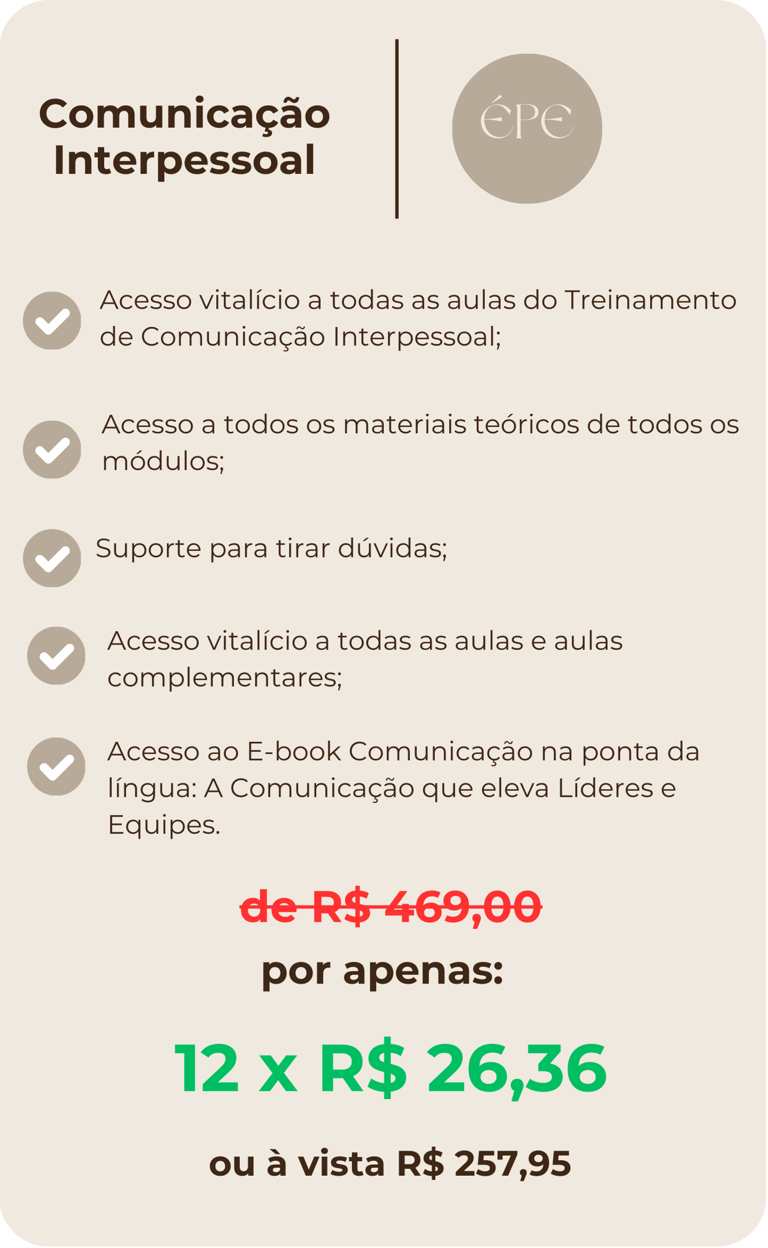 Preparamos uma condição especial para você adquirir o nosso treinamento de Comunicação Interpessoal hoje!!!