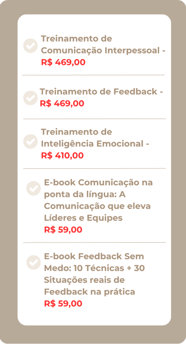Para líderes e gestores que já não sabem mais como lidar com a equipe de diferentes gerações. Se você enfrenta falhas de comunicação, colaboradores que não entregam como esperado ou dificuldade em dar feedback sem gerar atrito, este treinamento te ajuda a liderar com equilíbrio, clareza e resultados consistentes.