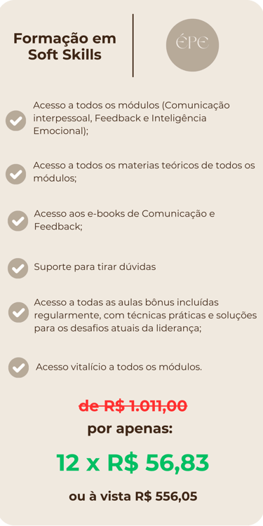 Mas preparamos uma condição especial para você adquirir a nossa FORMAÇÃO ESSENCIAL EM SOFT SKILLS hoje!!!