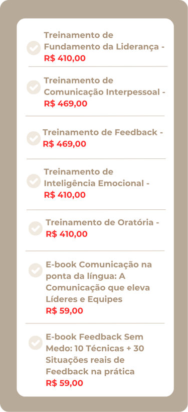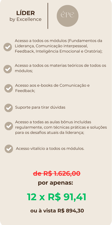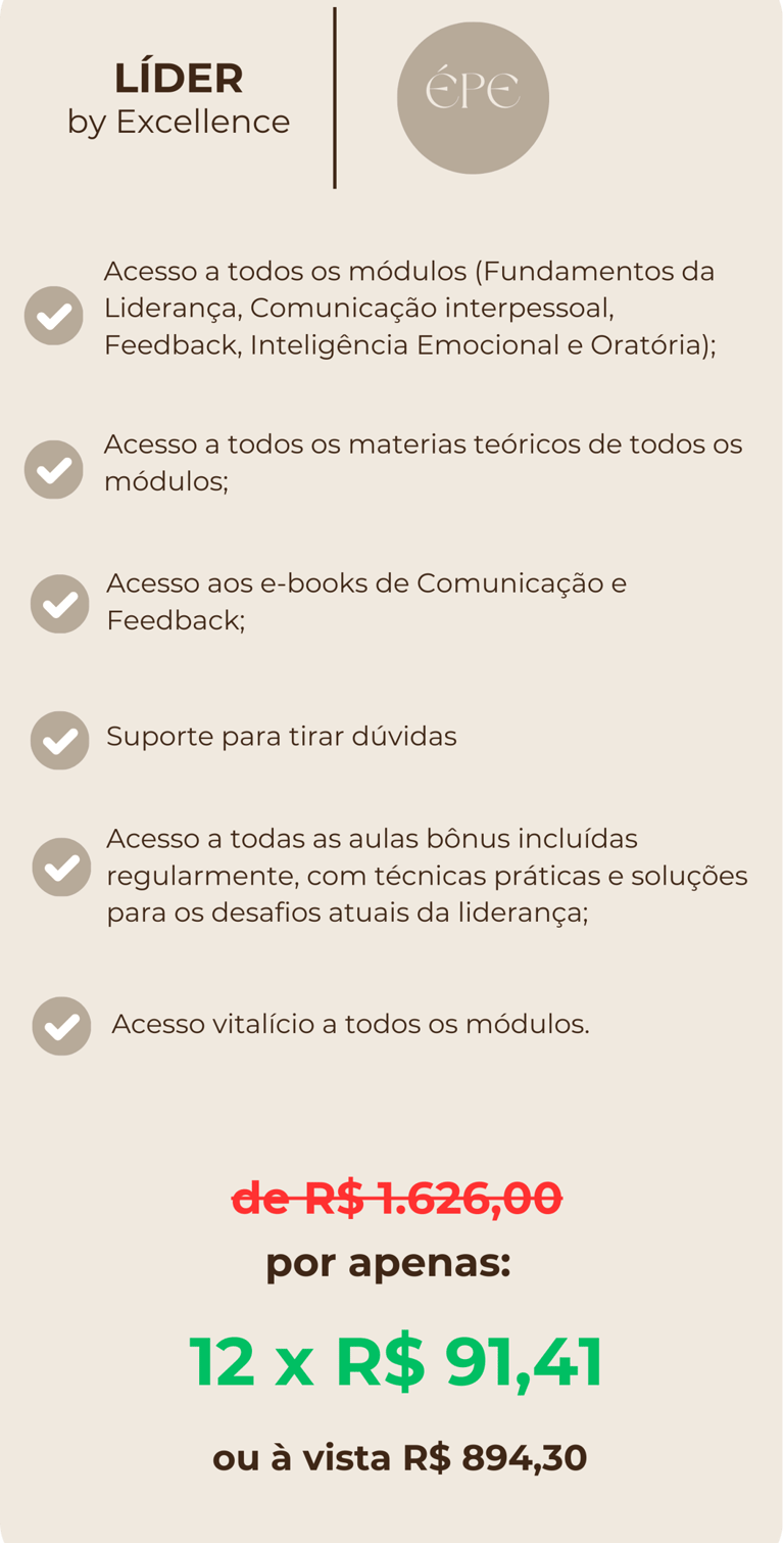 Mas preparamos uma condição especial para você adquirir o nosso treinamento Completo Líder by Excellence hoje!!!