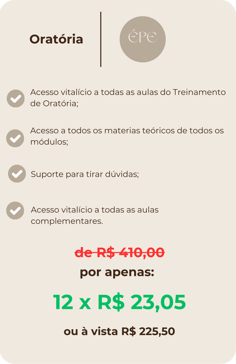 Preparamos uma condição especial para você adquirir o nosso treinamento de Oratória hoje!!!